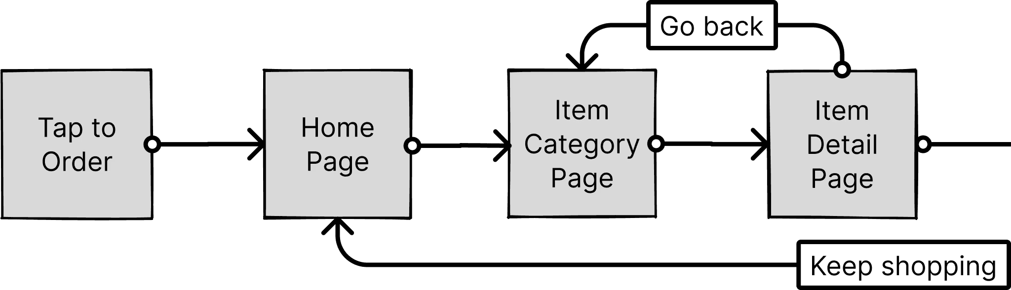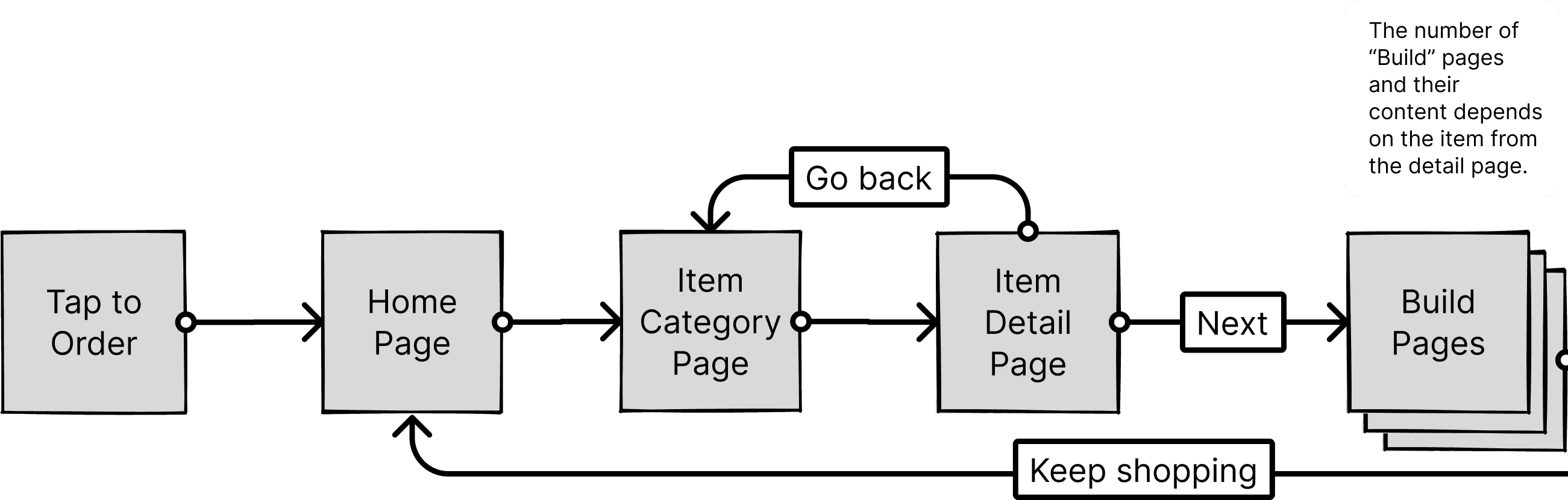 This included paths for standard menu ordering as well as custom flows for building meal combinations. By visualizing these journeys early on, we could identify potential friction points and design around them from the start.