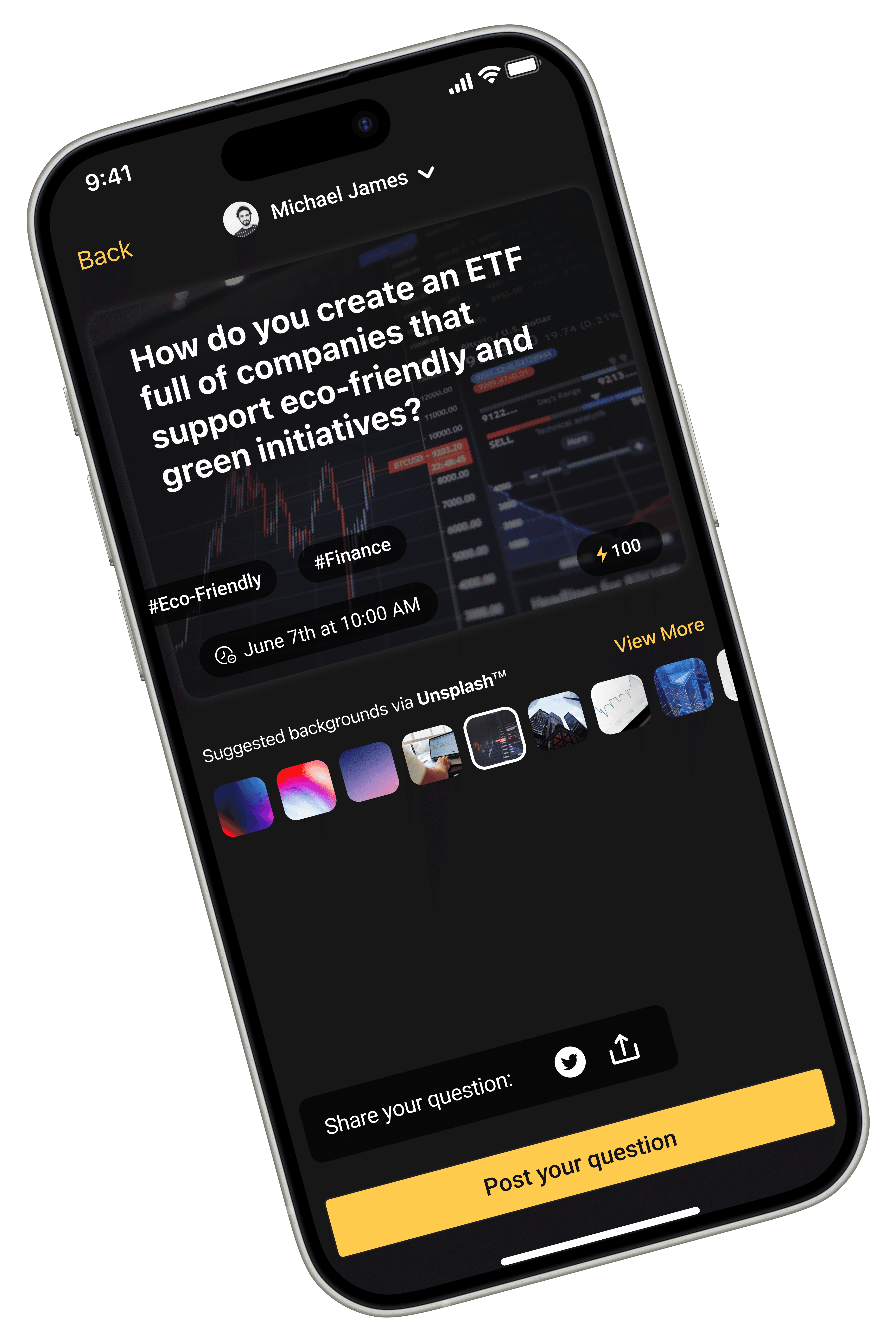 The question creator flow, uses a minimalist interface with simple text entry and an intuitive way for users to add images to their questions. Users can also add optional topic tags and preview their questions before posting.